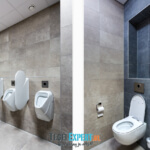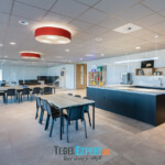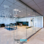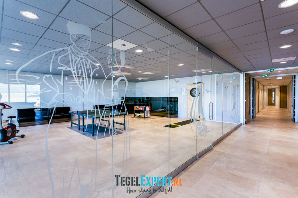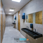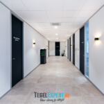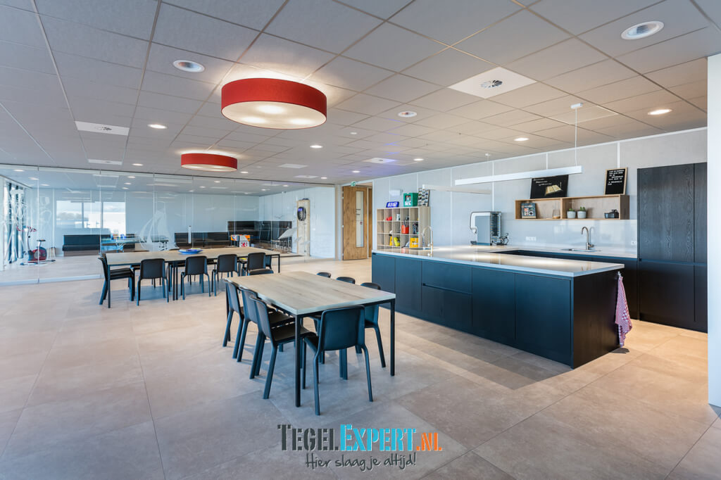 Neem een kijkje door dit pand om te zien hoe verrassend deze duurzame natuursteenlook tegels zijn verwerkt en gecombineerd in nagenoeg alle ruimten, van kantine tot toiletgroepen en kantoren tot terras.