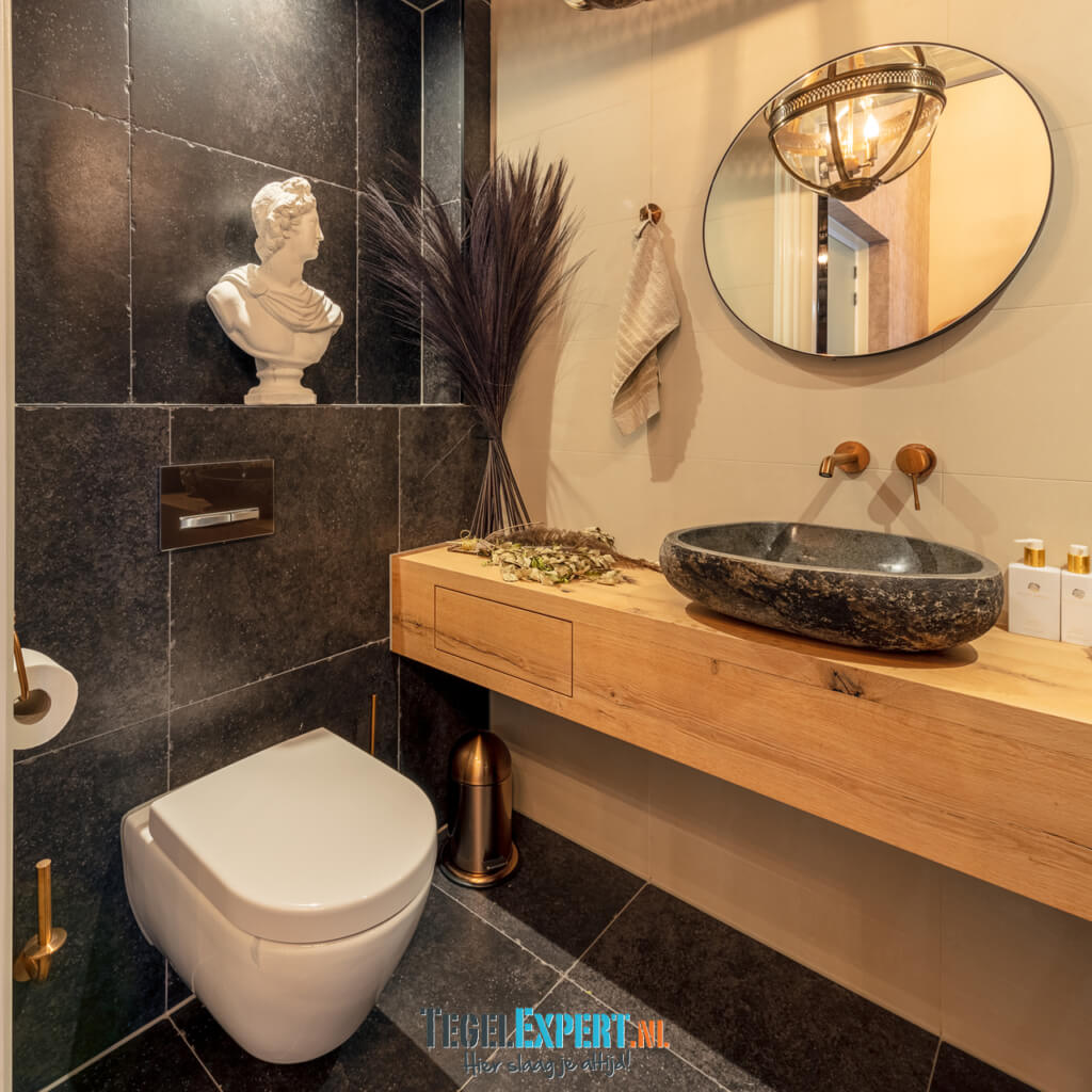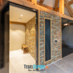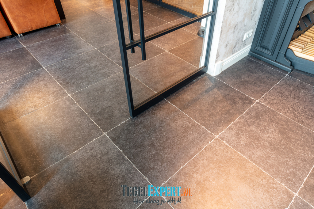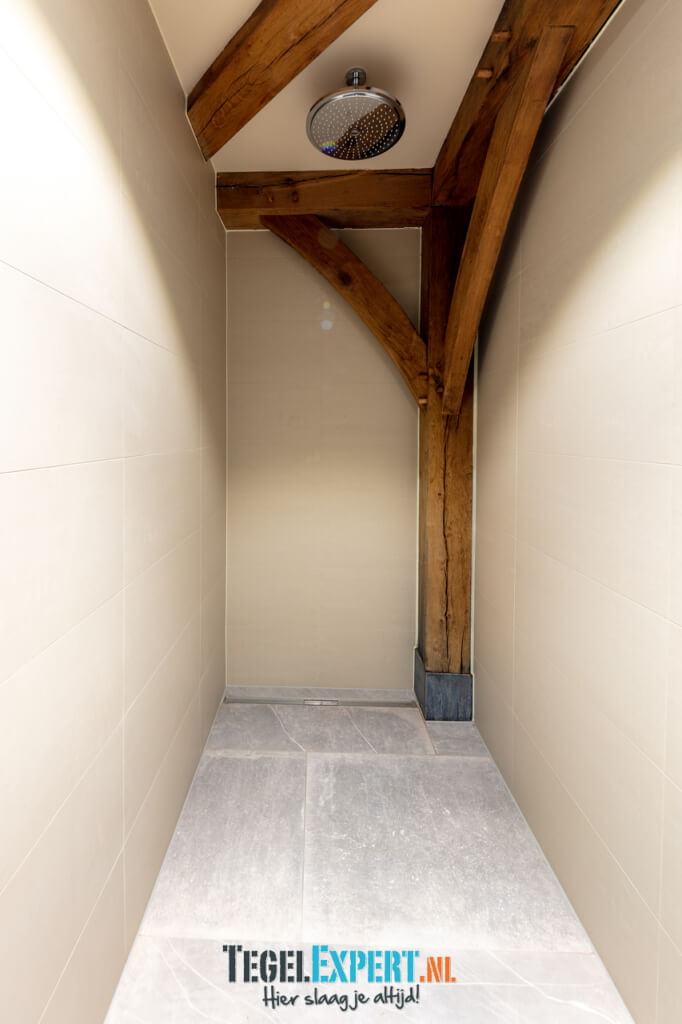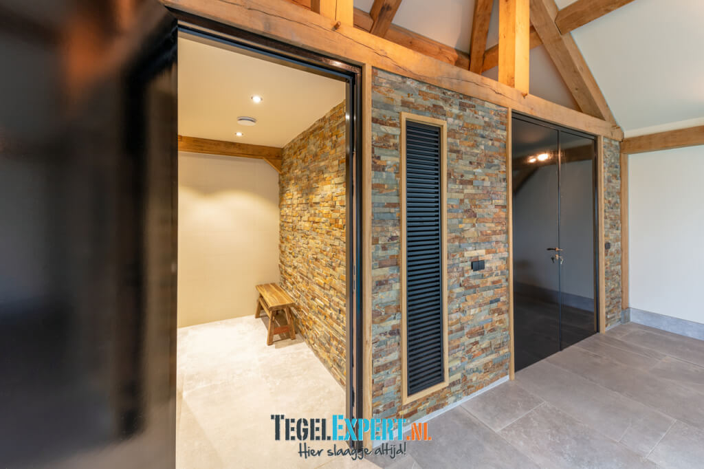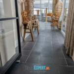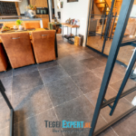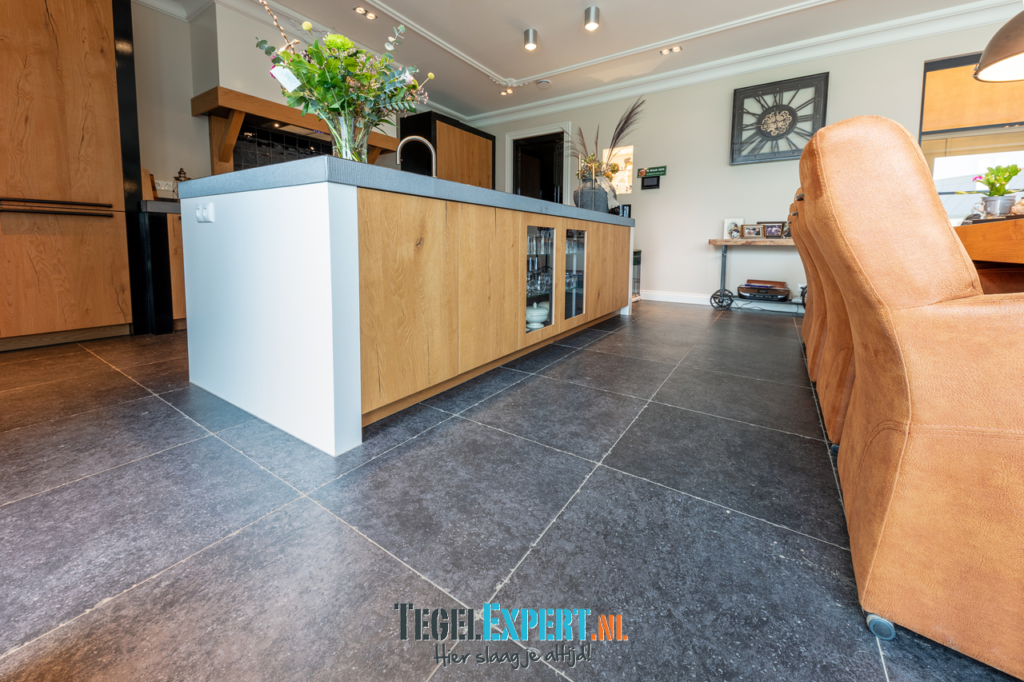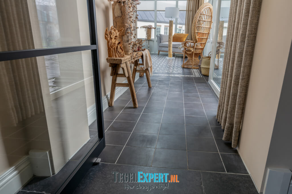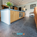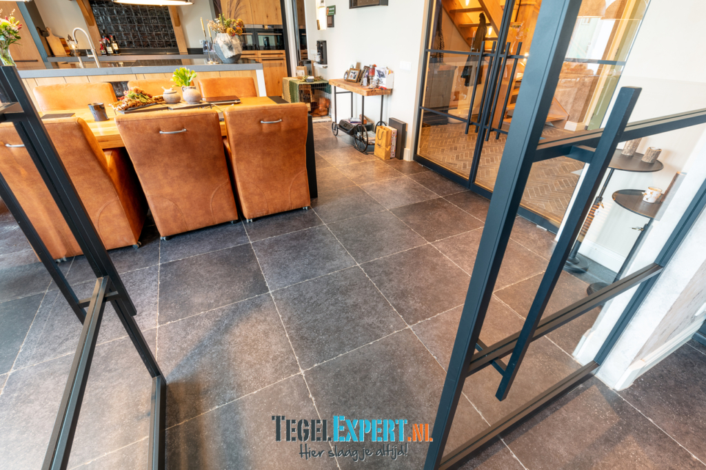 In de rest van de benedenverdieping ligt een prachtige Belgisch hardsteen look tegel. Een mooie tegel met een getrommelde rand, hierdoor krijgt de woning een mooie landelijke uitstraling.