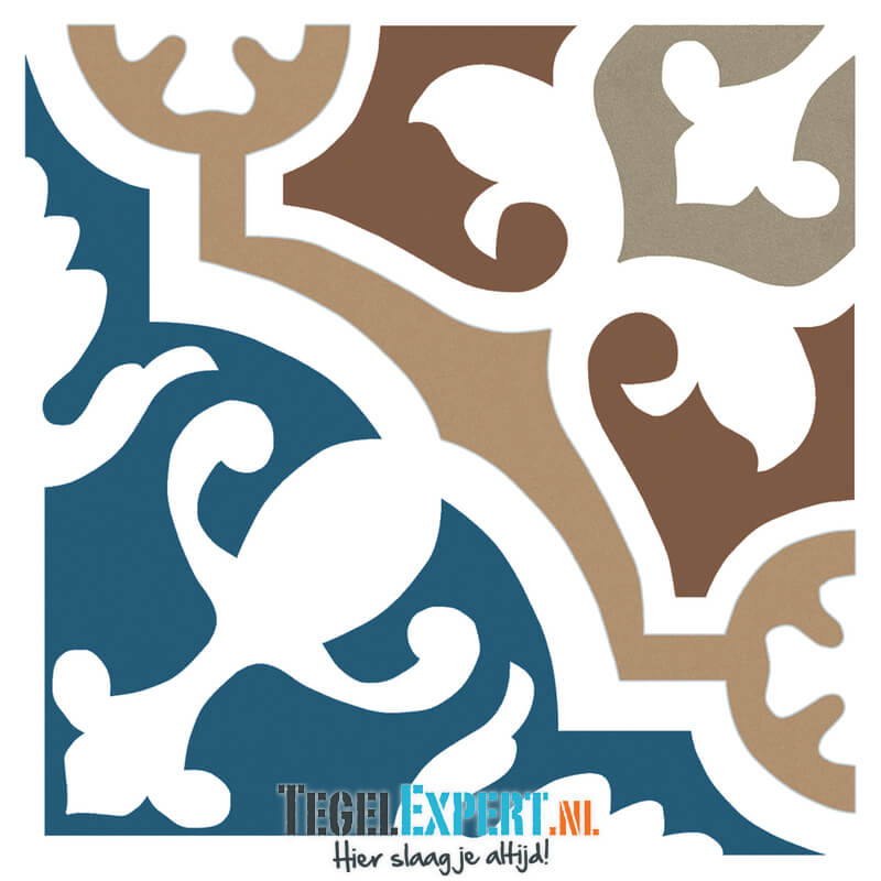 Aparici Vanguard Mix Natural is één van de vijf patroontegels die niet in een mix verkocht worden maar als een apart product. De bruin/wit/blauwe tekening in deze patchwork tegels is wel erg bijzonder en loopt mooi in elkaar door, leuk om te zien! Op zoek naar een vloer met verschillende patronen? Kies dan voor de Aparici Moving serie.