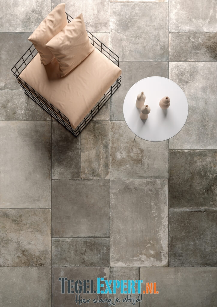 De French Vintage is een moderne versie van een authentieke kasteelvloer. Een prachtige serie die heel goed toe te passen is in verschillende interieurstijlen. Vooral in een landelijk, stoer en sober interieur komt deze vloer heel mooi tot zijn recht. Maar in een industrieel interieur geef je deze vloer weer een compleet andere look. De French Vintage Greige is een mooie grijze tegel met beige tinten.