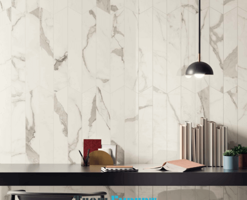 Home Élite Statuario is gebaseerd op één van de klassieke marmersoorten. Met zijn prachtige opvallend helder witte ondergrond, brede donkergrijze aders met vele kleine dunne vertakkingen, valt deze tegel echt op. Dit onderscheidt deze marmerlook van alle andere witte marmerlooks.
