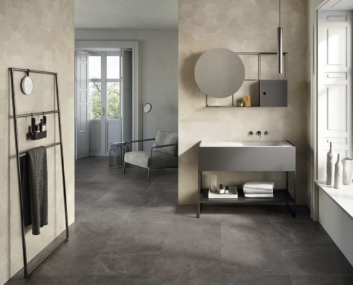 De Home Eureka is een prachtige serie keramische tegels welke geïnspireerd zijn op een uniek soort Siciliaans steen. Met zijn subtiele aders in de tekening krijgt de tegel een luxe uitstraling zonder heel prominent aanwezig te zijn.