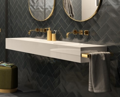 De serie Tide is één van de series van Motto by Mosa. Motto by Mosa biedt designtegels aan voor verschillende interieurstijlen en budgetten. De Tide dark Grey is een glanzende donker grijze tegel van 10×12 cm. Ga je voor een modern en simplistische stijl dan kan je bijvoorbeeld kiezen voor een gestapeld patroon in de lengte. Wil je toch een meer chique stijl, ga dan voor een mooi visgraat motief. Naast de kleur dark grey bestaat deze serie uit nog 7 andere prachtige kleuren.