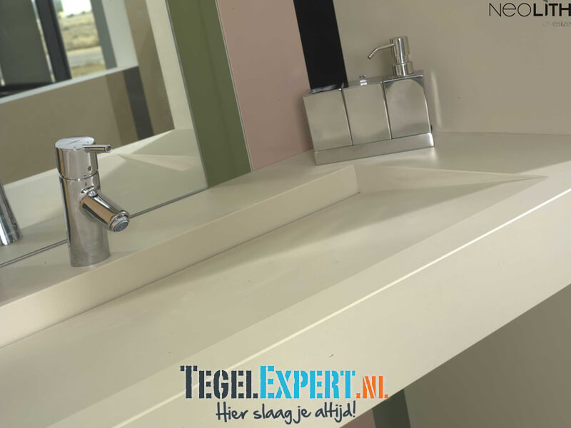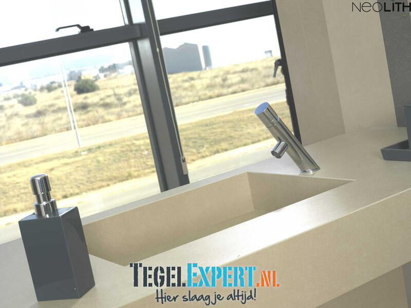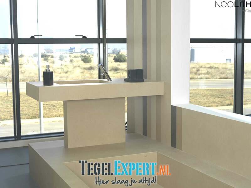 Dit is de Neolith Basalt Beige, een beigekleurige tegel van slechts 6 mm dik die zowel op de vloer als op de wand kan worden toegepast. Er zijn drie verschillende afmetingen leverbaar: 60 x 60, 60 x 120 en het extreme formaat 120 x 120cm.Neolith maakt naast deze drie formaten ook grote platen van 120 x 360cm. Deze kunnen worden gebruikt voor speciaal maatwerk. Denk bijvoorbeeld aan een aanrechtblad, wastafel, meubels, werkelijk alles is mogelijk met dit prachtige product. Zeer bijzonder!Deze tegel is gerectificeerd (rechte kanten) en dus met een smalle, bijpassende, voeg te plaatsen.Artikelnummers:60 x 60 cm: 87126 – 10871261 – 2087126260 x 120 cm: 86488 – 10864881 – 20864882120 x 120 cm: 86495 – 10864951 – 20864952TegelExpert Tip: We maken graag een offerte voor u, klik hiervoor op de grote oranje knop. Aanvragen kost nog geen minuut van uw tijd en kan u uiteindelijk behoorlijk wat besparen. Doen dus!Tegel te zien in de showroom: Ja