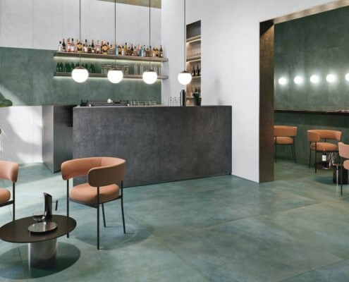 Refin Foil is een keramische metallook anders dan alle anderen. Er worden verschillende soorten materialen nagebootst met een ambachtelijke plaatbewerking of juist inwerking van roest en zuren. De Refin Foil Burnish is uniek in zijn soort. Het is een diep donker grijze tegel met kleine krasjes zoals je deze op echt metaal ook kan aantreffen. De Refin Foil Burnish is een duurzame en veelzijdige vloer die in vele stijlen toe te passen is. Met hout en staal kan je hiermee heel gemakkelijk een industrieel uiterlijk geven aan de vloer, maar met een paar velvet stoelen en gouden accessoires erbij creëer je ook al snel een hotel chique look. Kortom, met deze vloer kan je alle kanten op.