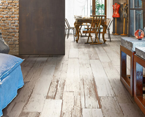 In een keramische versie wordt er in deze serie een houtlook met fascinerende houtnerf nagebootst. Met het verweerde hout, creëer je een mooi natuurlijk effect en lijkt het of deze vloer al jaren op zijn plek ligt. Doordat deze serie in verschillende formaten en kleuren te verkrijgen is, kan er een speels effect gecreëerd worden